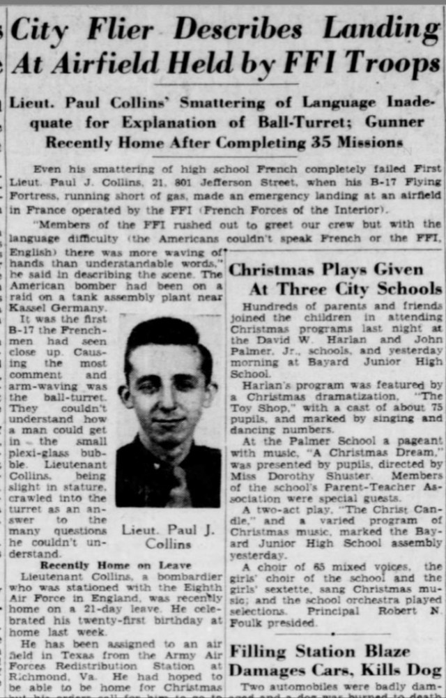 We landed in the middle of a fire fight between the Germans and the French Maquis. The Maquis came to our plane and wanted to take our parachutes for the silk and our machine guns. We said no. I did blow up the Norden bomb site as I was supposed to do (Although blowing it up was pointless since the Germans already had access to the Norden bomb site and had for several years).